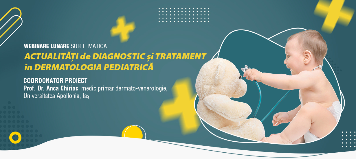 Avem deosebita plăcere de a vă invita să luați parte la seria de webinarii „Actualități de diagnostic și tratament în dermatologia pediatrică”, un proiect educațional dedicat profesioniștilor din domeniul sănătății interesați de aprofundarea și actualizarea cunoștințelor în acest domeniu complex și în continuă evoluție.
